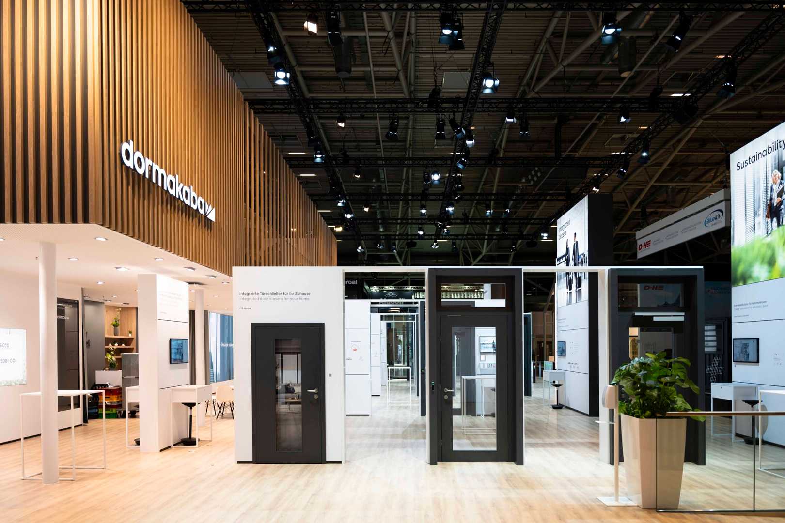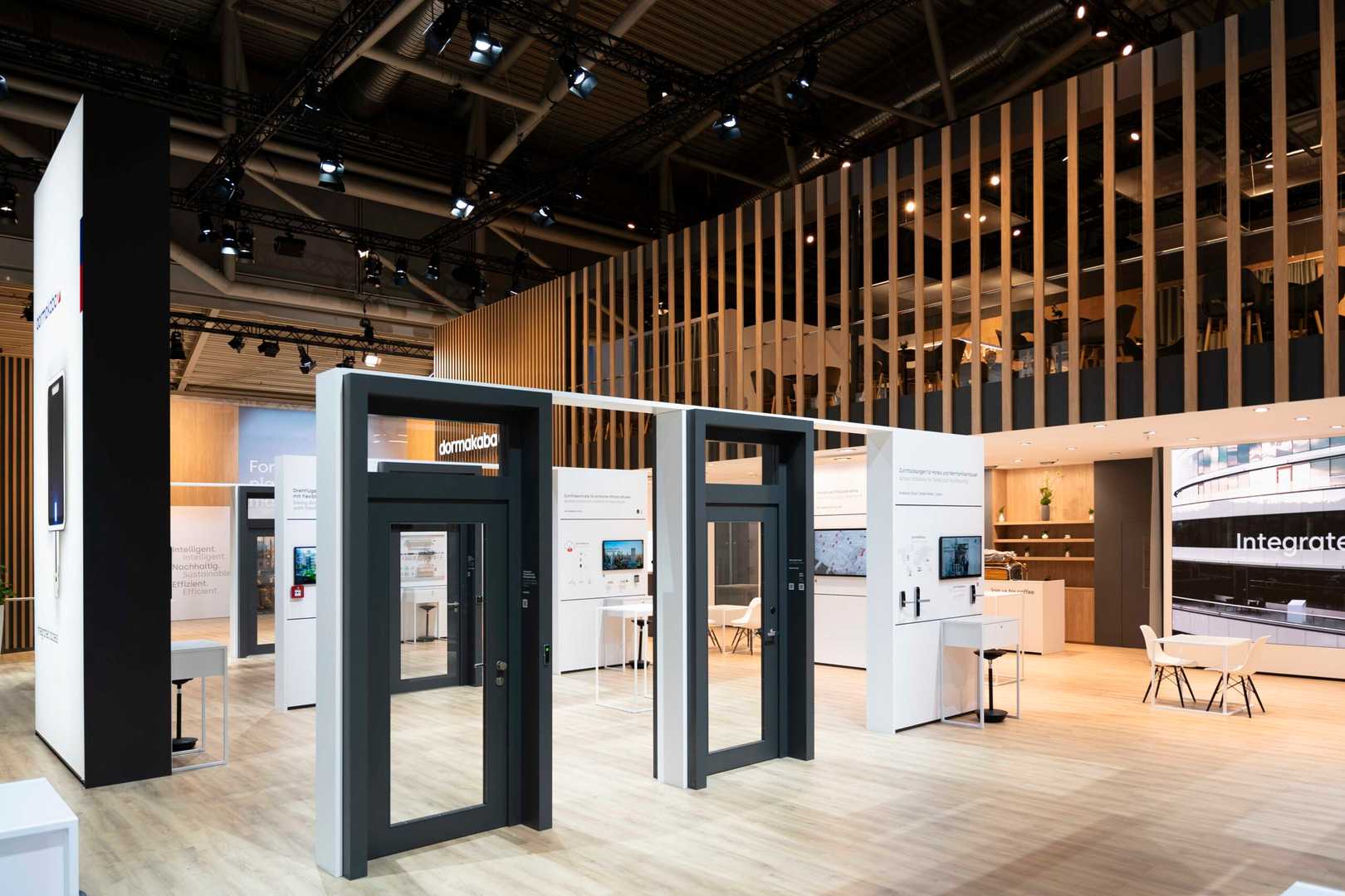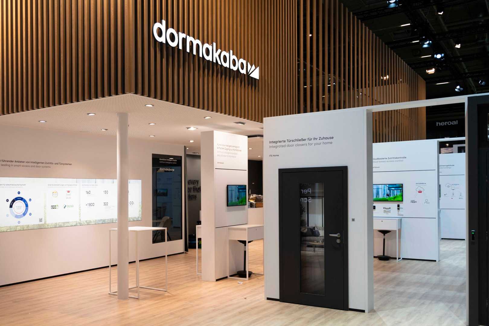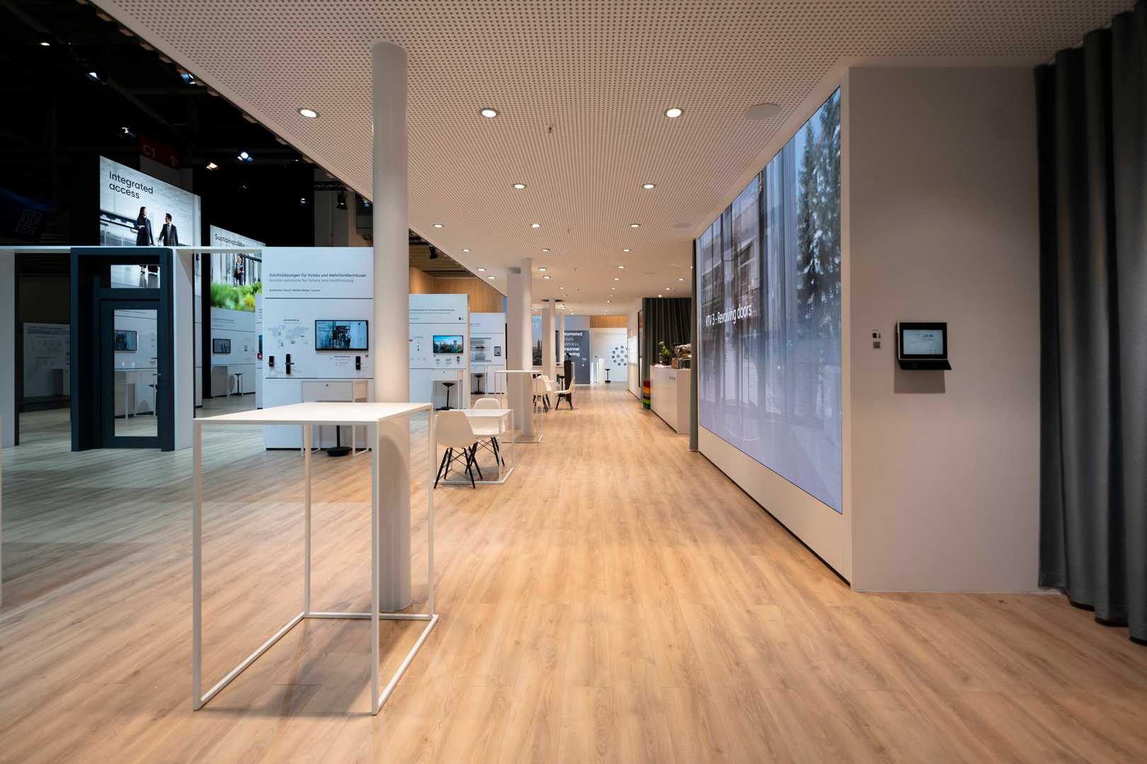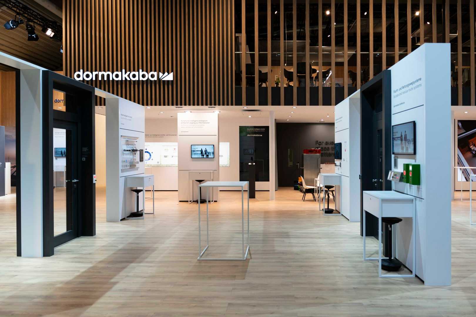Wir entwickelten ein Konzept, das warme Holzelemente mit einer klaren, harmonischen Farbpalette vereint, sodass Besucher das Gefühl von Verlässlichkeit und Nähe erleben. Die Architektur des Standes wurde so gestaltet, dass Produkte und Marke gleichermaßen im Blickfeld stehen und die Besucher auf natürliche Weise durch den Raum geführt werden. Dezente Beleuchtung, großzügige Flächen und ruhige Linien erzeugen ein hochwertiges, fast meditative Erlebnis, das die technische Präzision der Produkte unterstreicht. Jedes Detail, von der Materialwahl bis zur Präsentation der Exponate, unterstützt die Kernbotschaft: dormakaba steht für Sicherheit, Vertrauen und innovative Lösungen.