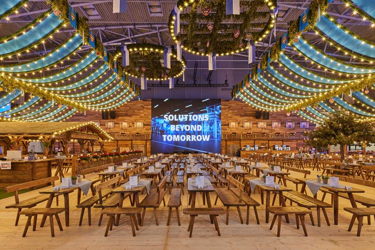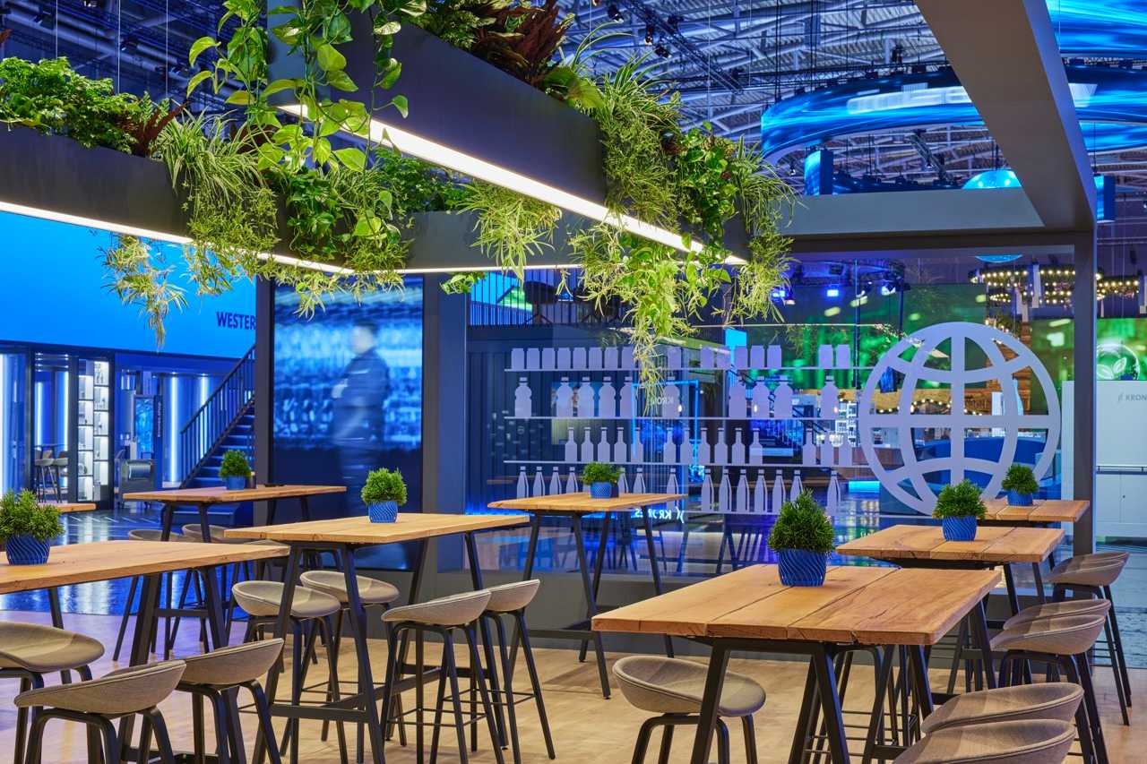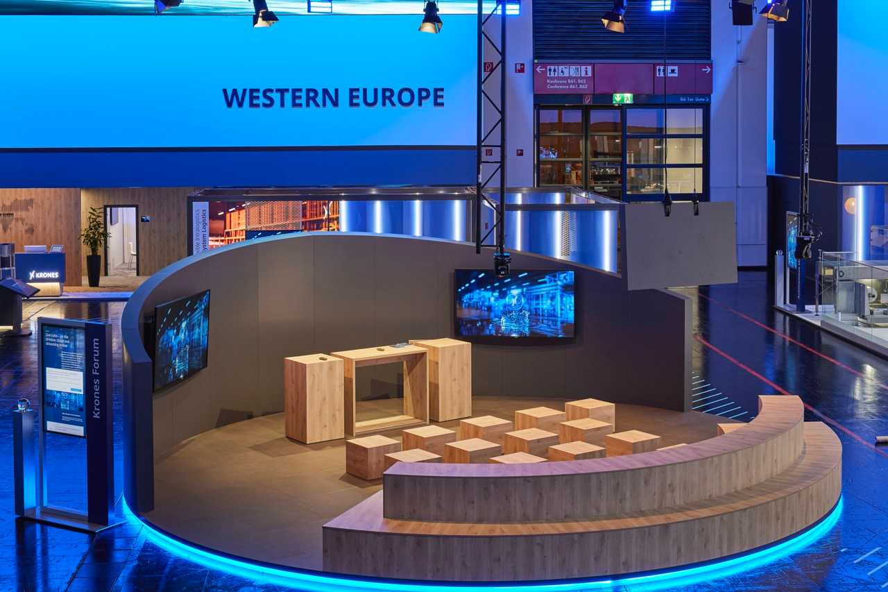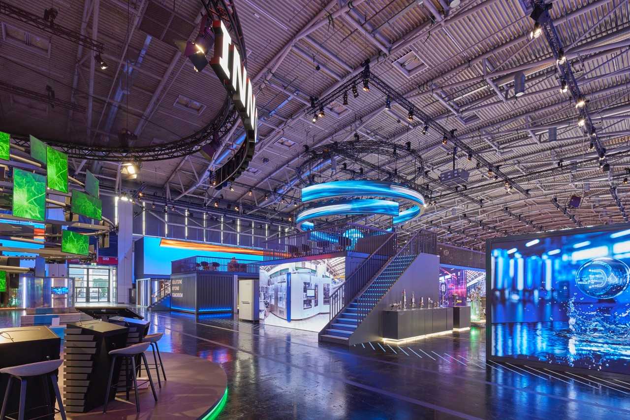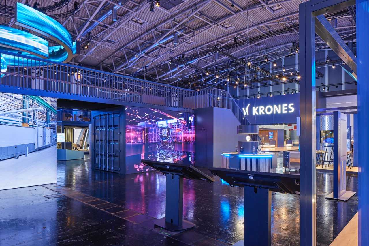 Über 10.000 m² entstand eine dynamische Markenwelt, in der Besucher durch die Line of the Future geführt wurden – eine PET-Abfülllinie, die nachhaltige Produktion und technologische Innovation sichtbar macht. Mit 730 m² LED-Wänden, 170 Monitoren und einem ausgeklügelten Mediensystem erzeugten wir eine visuelle Inszenierung, die Besucher fasziniert, während großzügige Lounge- und Workshop-Bereiche Raum für Begegnungen boten. Der Stand verschmilzt Technologie, Storytelling und Gemeinschaftsgefühl und macht KRONES’ Vision für die Zukunft der Branche greifbar.